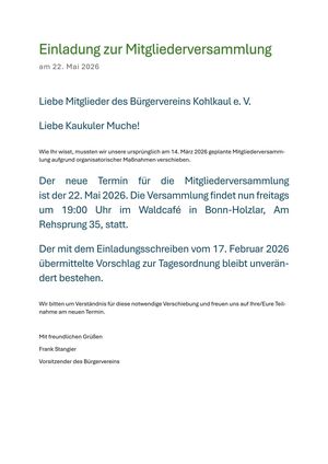 Der Bürgerverein Kohlkaul e. V. bietet...