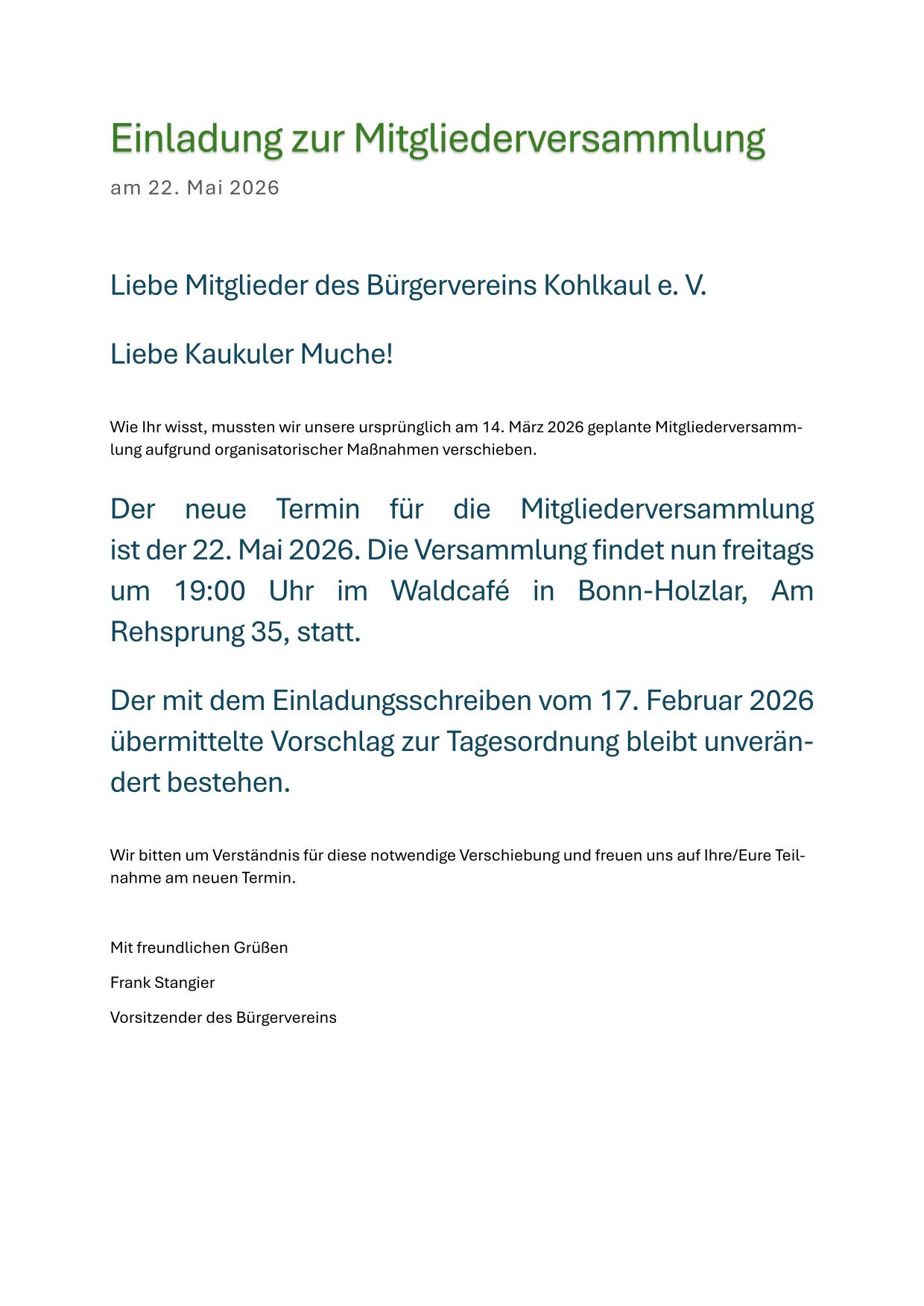 ...nicht nur seinen Vereinsmitgliedern, den Kaukuler Muchen, sondern auch allen Kohlkaulern Bürgern und Freunden des Bürgervereins